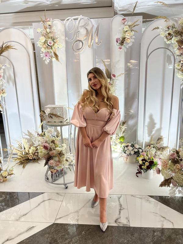 Куплялось плаття на весілля і одягалось тільки раз . Рукава знімаються , тому плаття може мати два варіанти вигляду , дорога якісна тканина . Розмір підійде М, Л , заді плаття є завʼязки тому підійде і на більші груди і на менші , довжина нище колін . Стан ідеальний . Купляли разом з іншою дружкою тому є можливість придбати два такі плаття. Брали біля 2 тис за одне , віддам за 800