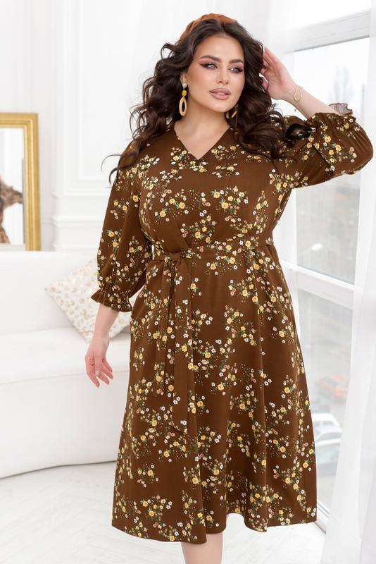 Сукня Розмір: 46-48, 50-52, 54-56, 58-60, 62-64, 66-68 Матеріал: щільний штапель преміум якості Розтяжність: немає розтяжності Представляємо чудову сукню для Вашого гардеробу! Ця сукня зроблена з котону та має елегантну довжину міді. Виріз V-форми підкреслює лінію декольте та додає привабливості. Рукава довжиною 7/8 з резинкою, яка створює невеликі рюшики додають романтичного настрою і підкреслюють жіночність образу. А особливу увагу заслуговує відрізна талія, з вертикальними виточками, яка вигідно підкреслить вашу фігуру. Якщо ви бажаєте ще більше підкреслити свою талію, в комплекті йде текстильний пояс. Ця сукня має не тільки прекрасний вигляд, але й практичність завдяки не великим кишеням в бічним кишенькам. Текстильний пояс входить в комплект. Зверніть увагу, що тканина може давати усадку при пранні. Орієнтовні заміри готового виробу: 50-52 р-р: довжина сукні 117см, довжина рукава від плечового шва 53см, обхват рукава 48см, ОГ - 100/104см, ОТ -82/94см, OC -128см. 54-56 р-р: довжина сукні 118см, довжина рукава від плечового шва 54см, обхват рукава 50см, ОГ - 108/112см, ОТ -90/102см, OC -136см. 58-60 р-р: довжина сукні 119см, довжина рукава від плечового шва 55см, обхват рукава 52см, ОГ - 116/120см, ОТ -98/110см, OC -144см. 62-64 р-р: довжина сукні 120см, довжина рукава від плечового шва 56см, обхват рукава 54см, ОГ - 124/128см, ОТ -106/118см, OC -152см. 66-68 р-р: довжина сукні 121см, довжина рукава від плечового шва 57см, обхват рукава 56см, ОГ - 132/136см, ОТ -114/126см, OC -160см. юр