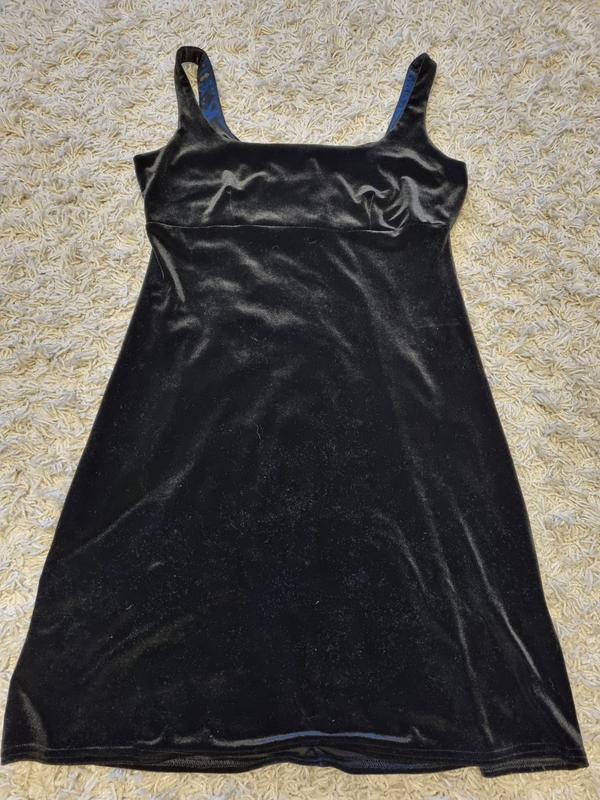 Бархатное угольно черное платье с квадратным глубоким декольте, с мразмер.в идеальном состоянии.