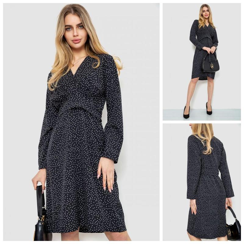 Сукня у горох на запах, 246RS8806 💥Материал : Сатин 💥Размер : L, M 💥Цвет: Электрик, Белый, Черный 💥Цена : 430 грн