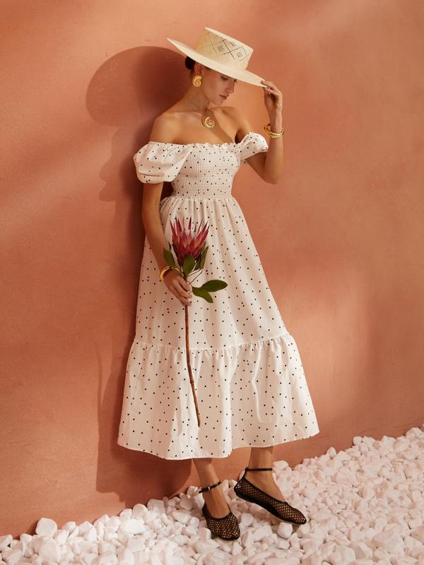 Приталена сукня в горошок. Выполнена из высококачественного турецкого материала. Изделие с рукавами-фонариками. Верх выполнен резинкой. Отрезано, немного выше линии талии. Расклешенный низ с воланом по подолу.. Размеры: 44,46,48 Доставка: 💙 Укрпошта (повна передплата) 💛Новая Почта (полная подписка или накладной платеж с подпиской) ✨Отправка 2-3 рабочие дни 🌿Есть возврат и обмен
