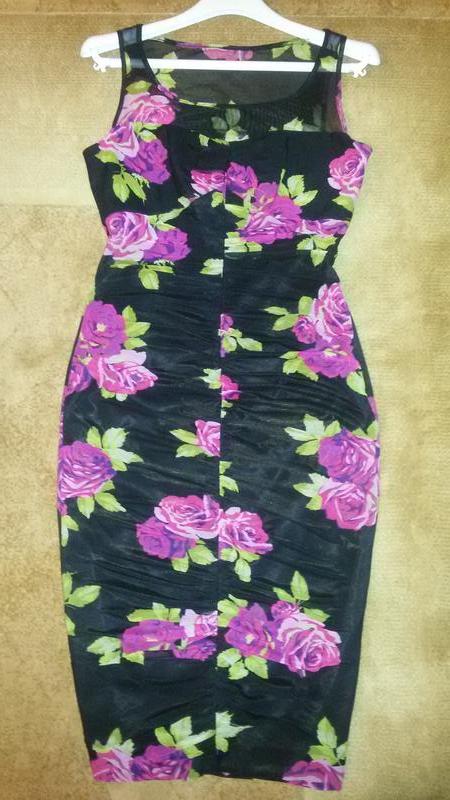 Облегающий фасон,на подкладке, верхний слой - нежная сеточка в присборочку - не просвечивает.Сзади разрез высотой 23см. Длина 98см, ОГ 40см, ОБ 42 в нерастянутом состоянии, но еще тянется.