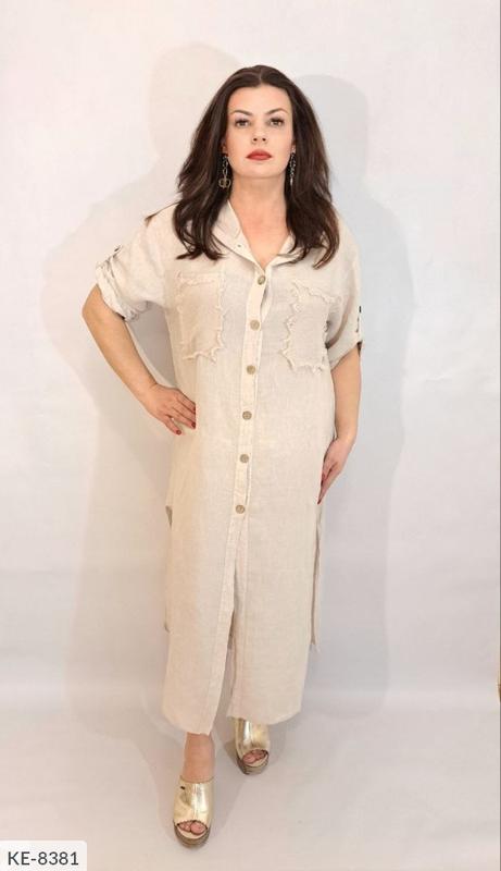 Платье KE-8381 . Размеры: 52-56 Платье лен люкс качества. Ог130 об 140 длина 127см.