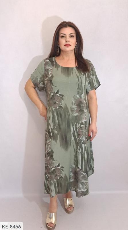 Платье KE-8466 . Размеры: 52-56 Платье штапель свободного кроя. Ог130от 140см об 150см. Длина 120см