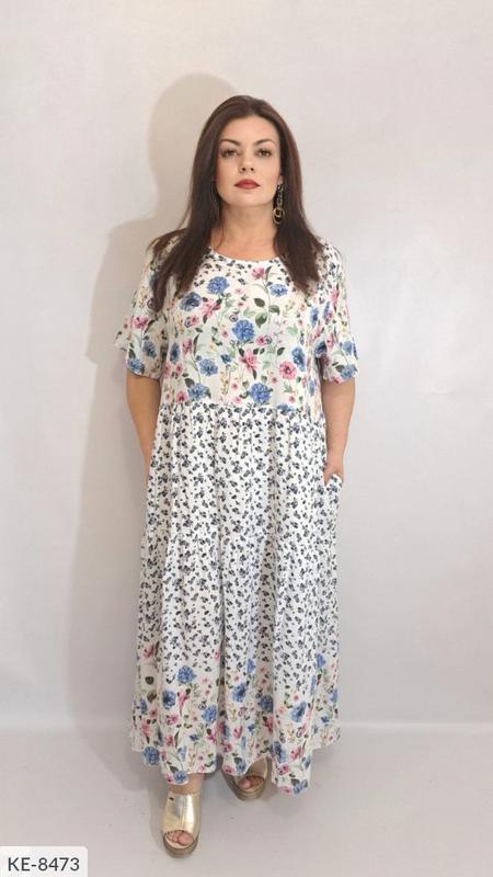 Платье KE-8473 . Размеры: 54-60 Штапель. Ог130см от140см об 150см Длина180см