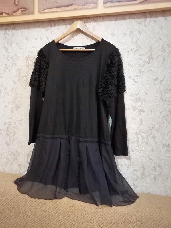 Плаття Jaune Rouge. Трикотаж, шифон. Стан чудовий, без нюансів. Заміри за виданням: довжина 89 см. ширина в грудях 56 см, у поясі спідниці 59 см талія занижена. довжина рукава від плеча 57 см.