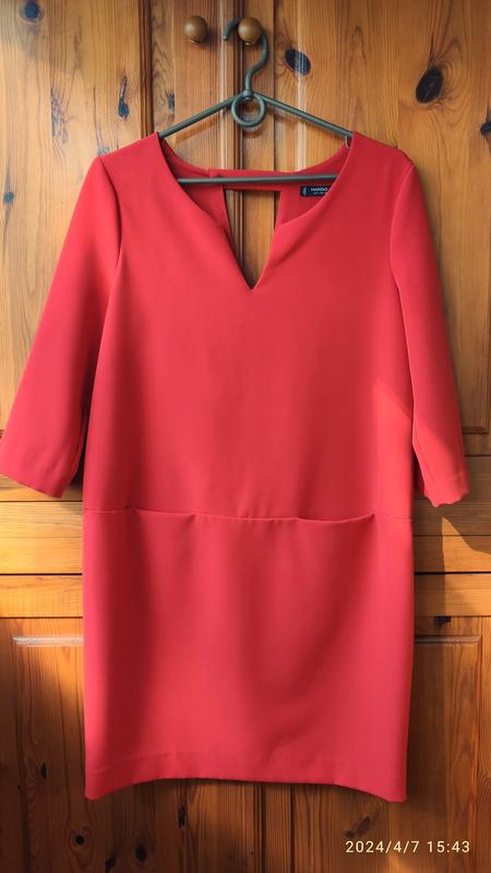 Красивое, удобное платье Mango насыщенного алого цвета с рукавами 3/4, на подкладке. Есть функциональные карманы по переду. Длина -85,5 см длина рукава -41.5 см ширина плечей -39,5 см полкруг груди -47 см, бедер -49 см, низу-47 см