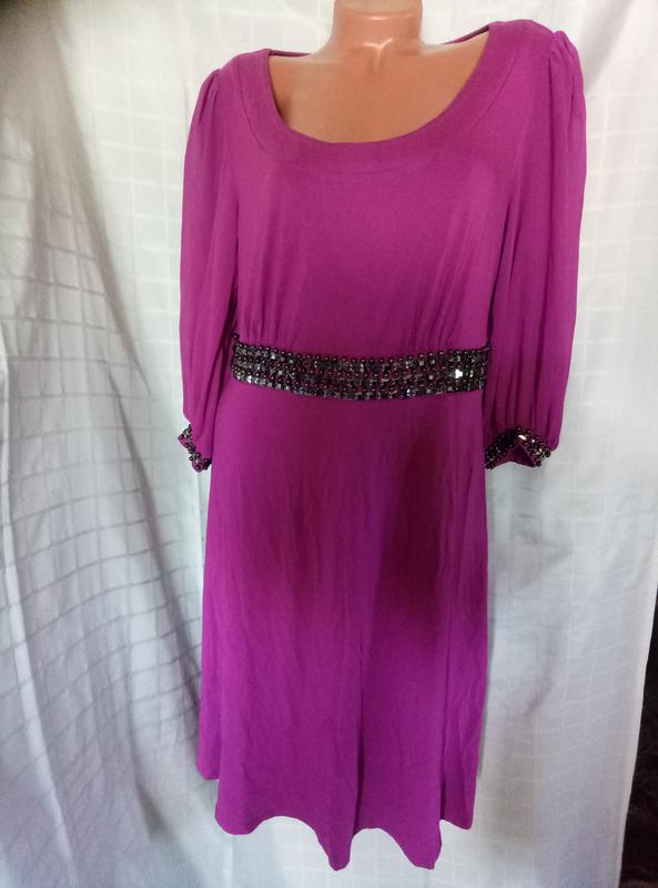 Очень красивое платье Подойдет на размер ХЛ, ХХЛ Плечи 40 см ПОГ 50-95 см ПОТ 42-49 см ПОБ 57-75 см Рукав 45 см Длина 98 см Ткань очень хорошо тянется Перед заказом уточняйте, пожалуйста, детали +5 грн упаковки