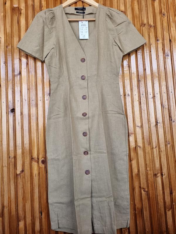 Стильное льняное платье миди Reserved. В наличии размер XS. Спереди застегивается на пуговицы, есть 1 запасной. Рукава сверху слегка присобраны. ПОГ 42,5 см ПОТ 33,5 см ПОС 45,5 см Длина 104 см Состав: 55% лен, 45% хлопок. Большой выбор платьев и блуз Mango, Zara, H&M, Asos, Reserved - смотрите, пожалуйста, все мое объявления. Подписывайтесь на мою страницу, частое пополнение ассортимента!