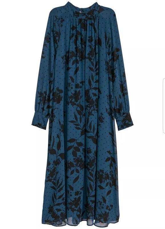 Шифоновое платье миди H&M свободного кроя. Розмір на бірці 40. Очень красивая и актуальная. 40: ПОГ 53 см ПОТ 65 см ПОС 77 см Ширина по низу 108 см Длина 122 см Состав: Полиэстр. Новое, без бумажной бирки.