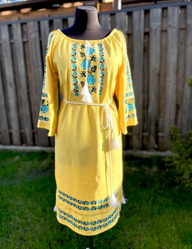 Новое красивое и яркое платье вышиванка Из натурального льна, ручная работа. Размер S-L