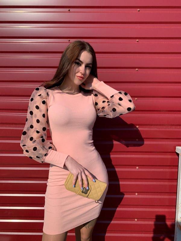 Платье,хорошо тянется, размер универсальный пудра и черный. На мне черное рост 158,о.г 95,о.б100