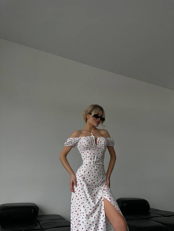 Новинка 🔥 Сукня 🔥 Арт.231 Ткань: качественный софт Размер: 42-44, 44-46 Цвет: белый, зебра Идеальное базовое платье ❤️ платье миди самого универсального кроя, которое подчеркивает талию и красиво открывает ключицы ❤️ рукав на резинке и кулиска на комди