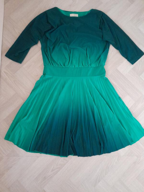 Платье с шикарным градиентом на подкладе, имеет съемный пояс, рукав 3/4