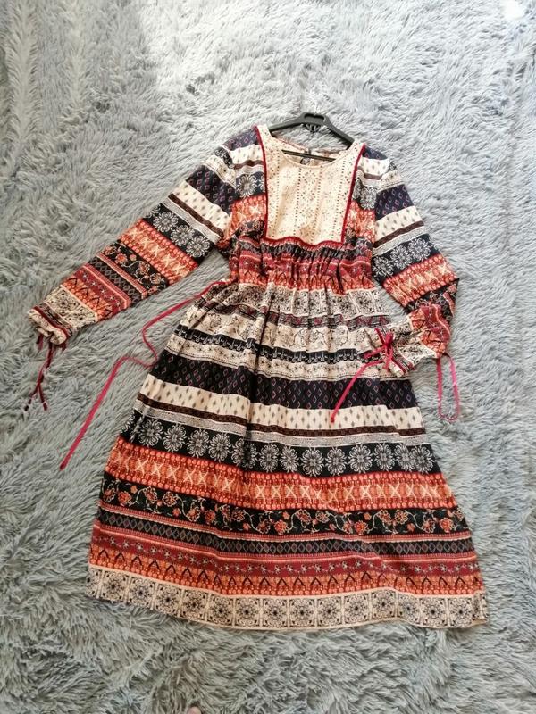 Бавовняна сукня батал довжина міді зі вставками з прошви вишито бісером рукав і талія на з...