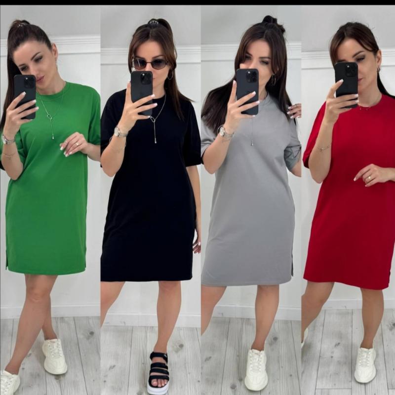 Платье Арт 494 Ткань кулир (турецкое производство, коттон 95%) Цвет черный, серый, зеленый, красный Размер 42-44,46-48,50-52 Цена 550 грн Платье-футболка, прямого свободного кроя, сбоку с разрезами harizma
