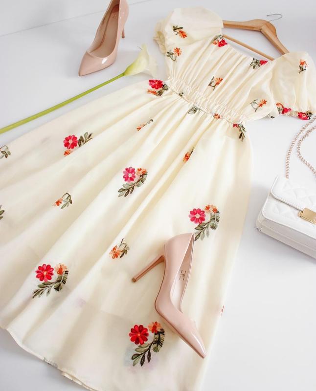 Летнее платье миди с вышивкой цветами