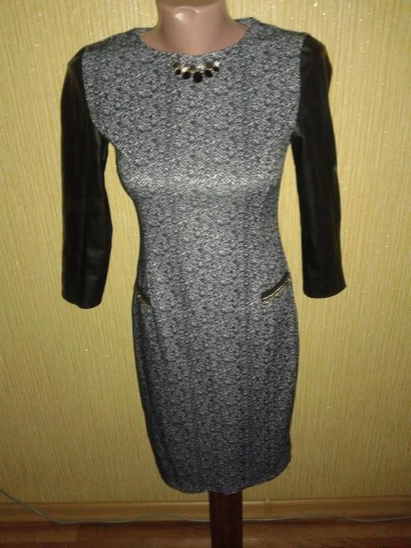 Ткань дайвинг и экокожа на рукавах. Длина 90см, длина рукава44см, Обхват груди в спокойном состоянии 80см тянется до 90см, обхват талии в спокойном состоянии 70см,тянется 82см бедра 84 тянется 96см