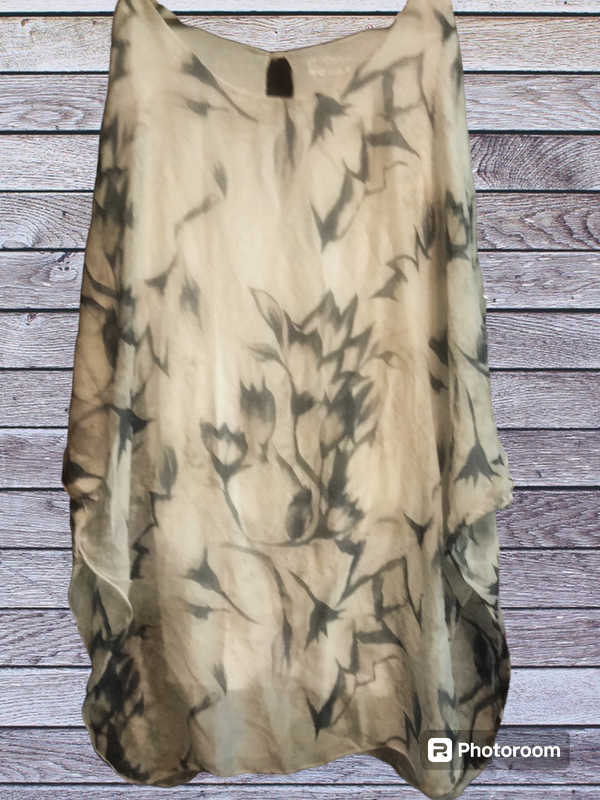 Платье Италия шелк/вискоза,легкая, свободная, с рукавами крыльями, разрезы боковые, остановка на пуговице.ПОГ 48/56 Д 90