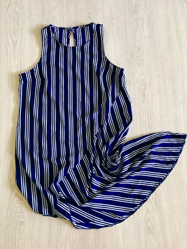 Atmosphere платье в полоску с нюансом. Размер 14/42. Длина 84/110 см. ПОГ 50 см. Нюанс: последнее фото в желтом кругу, маленькая стрелка, почти не видно).