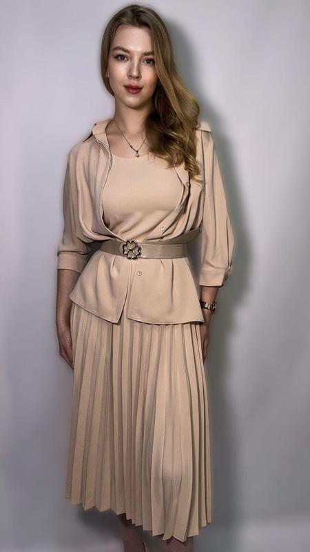 Платье двойка, сарафан с широкой бретелькой и рубашка, стильный и комфортный комплект