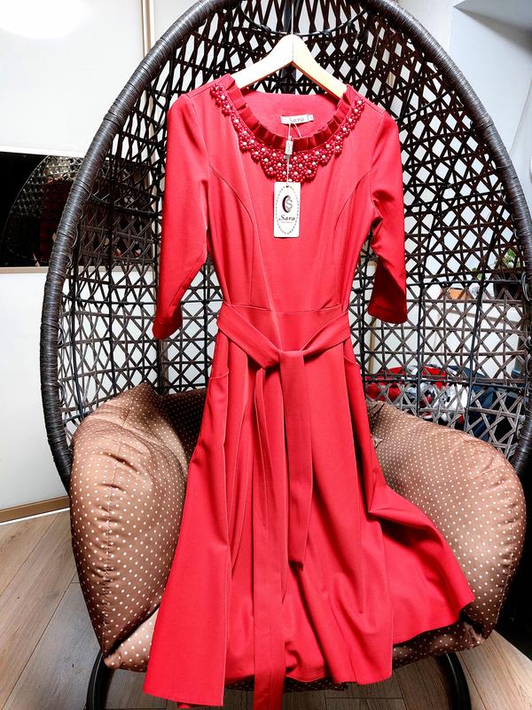 Сукня майже нова. Вдягалася 1 раз. Без нюансів, плям, зачепів. На 48р-48.5р. Заміри вишлю. Поясом регулюється талія. Збоку потайна блискавка. Довжина за коліна при зрості 168 см. Тканина не мнеться. Дивіться мої оголошення.