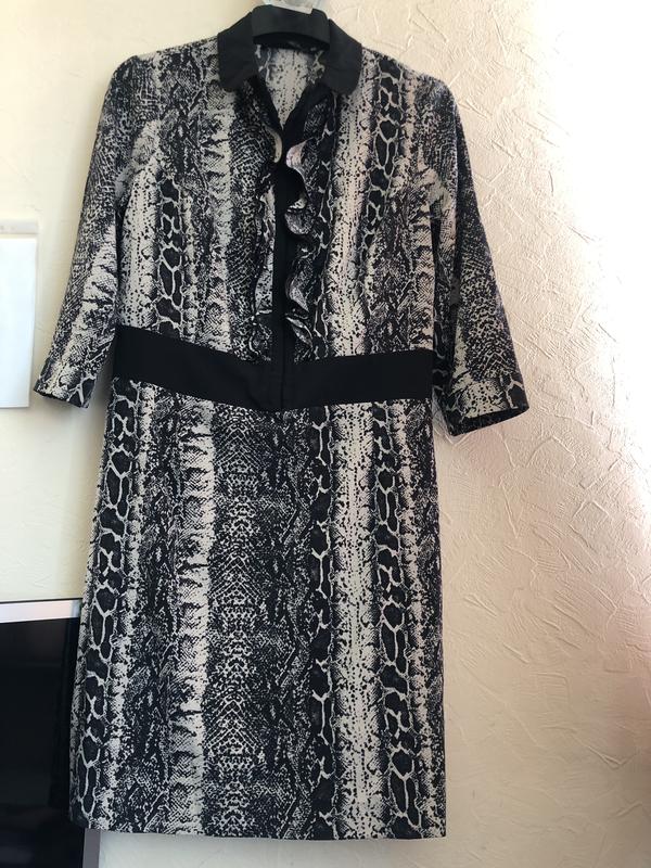 Стильное платье, размер М Красиво садится по фигуре и подчеркивает талию Спереди на крючках, сбоку на молнии Рукав три четверти Ткань легкая и немного тянется Замеры: Длина-90 см Длина рукава-44 см Полуобхват под рукавами-48 см Полуобхват по талии- 40 см