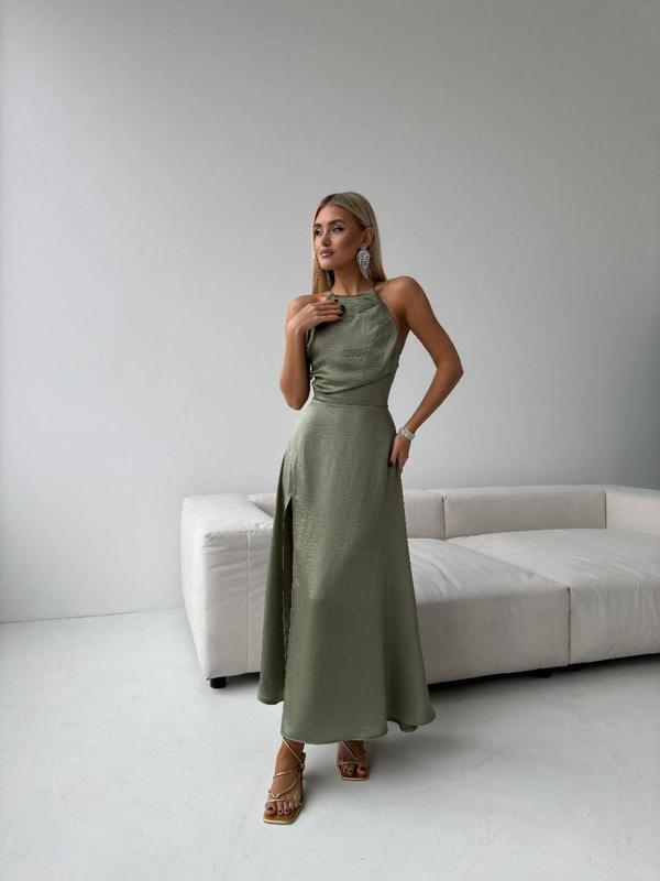 Сукня Моніка із легкої літньої тканини з акцентом на талії та шнурівкою на спинці ❤️ ☑️Модель 235/82 ☑️Тканина: Американський креп ☑️Кольори: олива ☑️Розміри: 42-44; 46-48 Ціна 860 грн 🔥