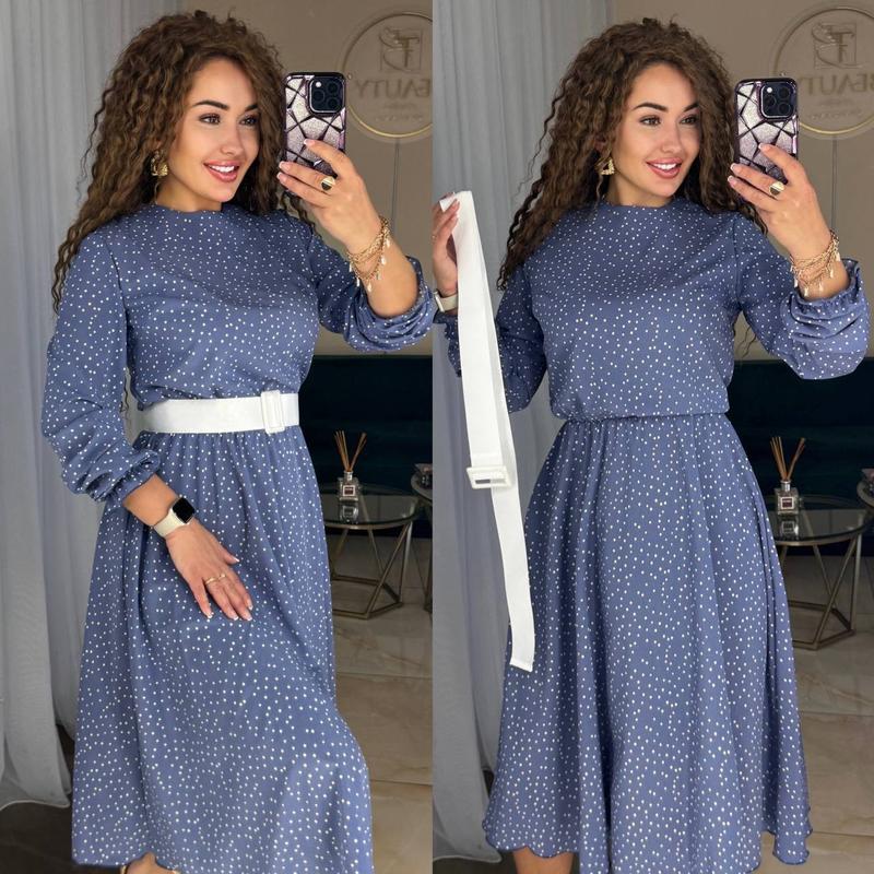Сукня 🩷Модель 869 Ціна: 1150грн Тканина: софт Розміри:1 ( 42-46), 2 (48-52), 3(54-58) Легка класична сукня , застібка позаду на шиї. На талії резиночка. В комплекті білий пояс