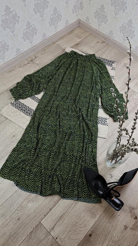 Брендовое стильное миди платье в принт Asos💚🖤 полностью новая, ткань плисерированная, приятная на ощупь и к телу👌 фото не может передать всей красоты (на манжетах и горловине есть резинки, возможно носить под пояс🔥размер указан 14, на размер L сядет очень красиво, замеры по запросу🥰