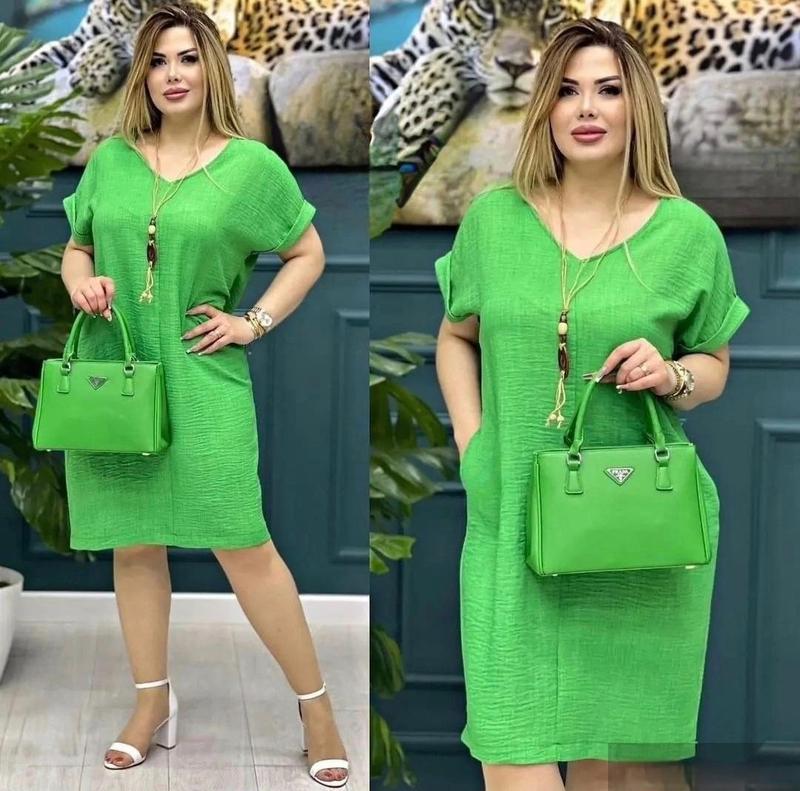 НОВИНКА Сукня Тканина: льон віскозний жатий ( не тягнеться) Розміри: 48-50, 52-54, 56-58 Кольори: чорний, трава, малина, беж, олива. Заміри 48-50 ОГ 112 ОС 116 52-54 ОГ120 ОС124 56-58 ОГ128 ОС 132 Довжина 100 см Щоб сукня виглядала як на фото та добре виглядала, потрібно обирати розмір з запасом! 2-4 см замало для такої тканини! мп