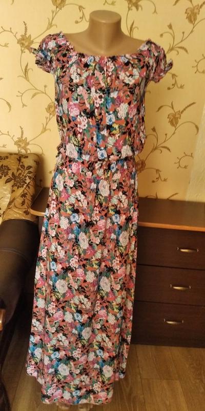 Легенький віскозний сарафан.Довжина 140 см,ПОГ - 46-47 см,ПОТ- 35 см в сокійному вигляді,тягнеться до 45 см,ширина внизу 96 см.Тканина не парить,не мнеться.