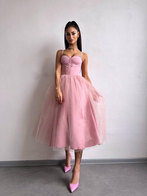 Платье миди с чашками с пышной фатиновой юбкой, платье миди на брителях