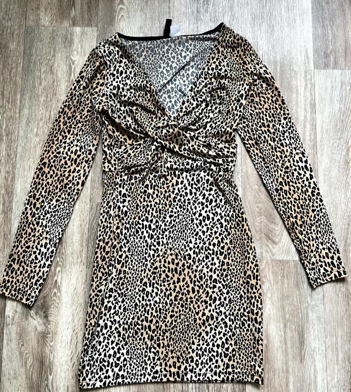 мини платье в леопардовый принт,размер по бирке 36, длина 78,5см;рукав 57,5см;Пог: 41,5см