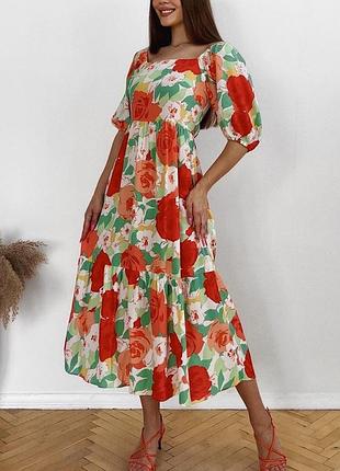 Дуже гарна та яскрава сукня міді від F&F З пишними рукавами, і квадратним вирізом Тканина 100% візкоза В ідеальному стані Розмір Xl-Xxl Заміри Довжина 130 Рукава 36 ПОГ 48 з заді на резінці, тягнеться ПОТ 42