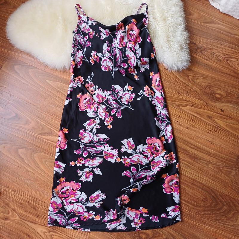Платье в бельевом стиле с цветочным принтом, в хорошом состоянии, есть небольшие зацепки(фото добавлены)