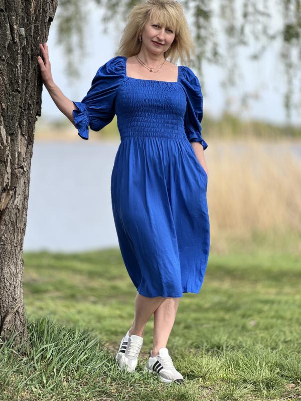 Платье на лето. Ткань штапель лен Размер единственный 44-50.Длина 105 см, на груди строчки резиночек растягивающиеся.Кольори разные. Производитель харьковское швейное производство, оплата на карту, или накладной с подпиской 150 грн, отправка новой и укрпоштой
