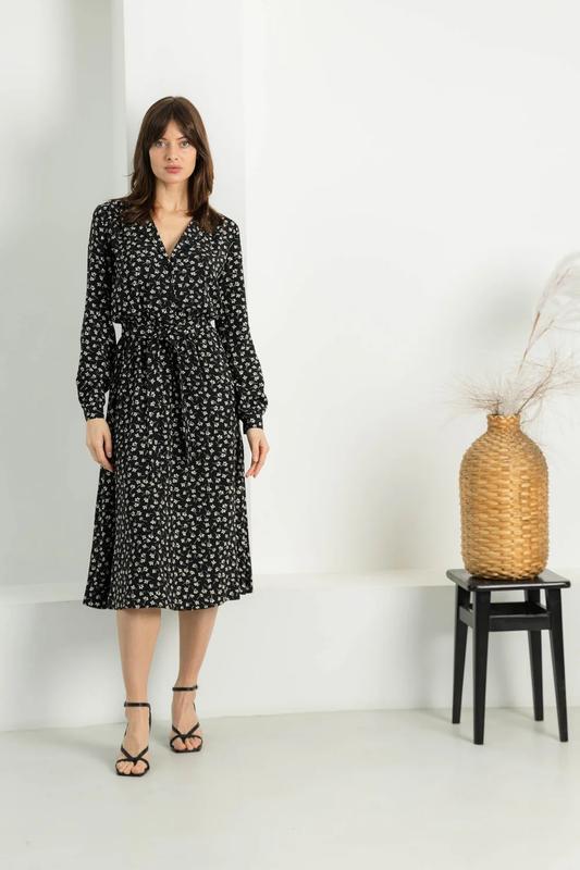 Штапельное платье-рубашка меди длины с цветами 42-52 размеры разные цвета