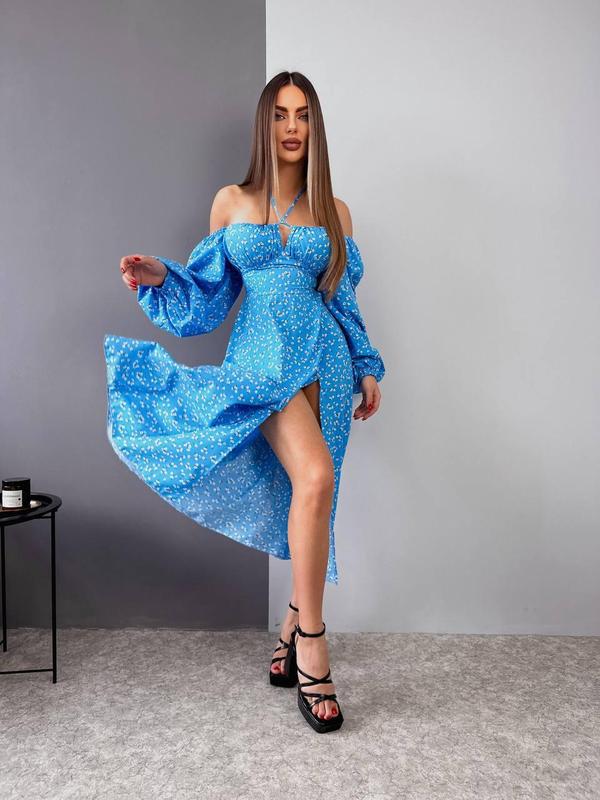 Легкий длинный сарафан миди с разрезом - Ткань - софт принт цветочек Измерения S-M: - Длина изделия от змейки - 108 см. - Длина рукава - 70 см. - Обхват груди - 74 см. + сложение - Обхват талии - 70 см. + шнуровка - Обхват бедер - 100 см. Важно! Оттенок ткани и размер гороха может отличаться (зависимо от поставки тканей). Браком не считается.