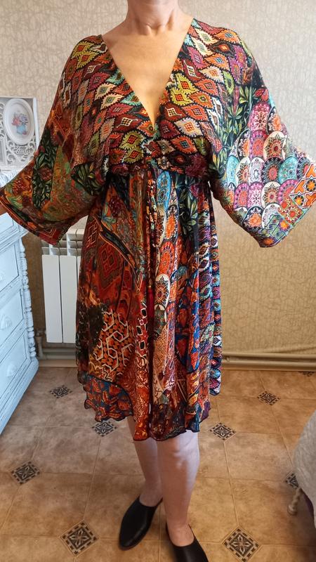 Без недостатков,легкая, не жаркая.Замеры:длина 86 см,ПОТ на резинке 35 см.Надо на М 86×70×90.Можна использовать как домашнюю одежду,или на пляж.Дод.фото и замеры по запросу.