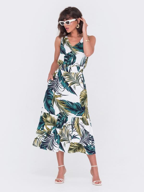 60914 літня принтована сукня без рукавів міді листя на білому