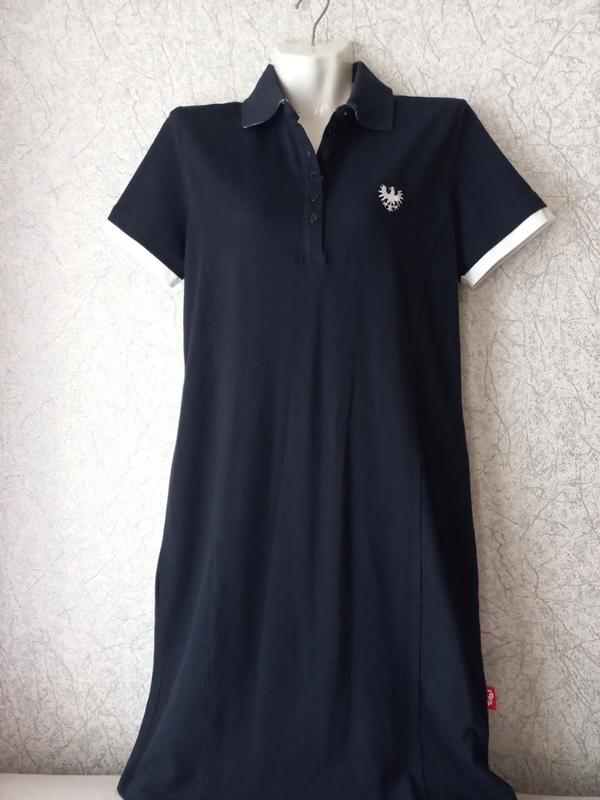Платье трикотажное в спортивном стиле. Длина 100см, плечи 40см, пог52, рукав 21
