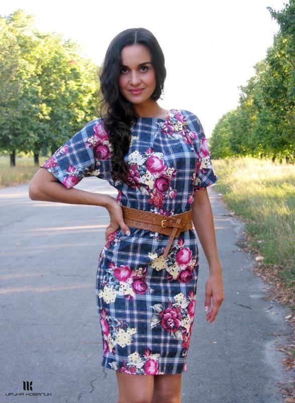 Платье из коттона-стрейч в клетку с цветочным принтом.В качестве украшения - золотая булавка с подвесками . Пояс из искусственной кожи. Горловина ассиметричная ,на левом плече две глубокие склады украшенные золотой булавкой. На спинке потайная молния. Юбка с шлицей ,по талии резинка. Рукав цельнокроеный. Платье прекрасно подчеркивает достоинства и удачно скрывает недостатки фигуры. Яркое и в то же время изысканное и женственное платье поможет Вам создать неповторимый образ. В наличии : XL 48-50 Замеры платья : Рост модели на фото 175 см на росте 165 длина юбки-середина колена XL : ОГ-103 +- ОТ без натяжения резинки-74 ОТ с максимально растянутой резинкой-94 ОБ-108 Длина юбки от талии-58 Дополнительные характеристики: Фасон : Баллон Фасон : Платье - футляр Фасон : Прямой Тип ткани: Вискоза Тип ткани: Хлопок Цвет : Бордовый Цвет : Синий Узоры и принты: Клетка Узоры и принты: Цветочный и растительный принт Сезон: Лето Длина: Короткое / мини Длина: Миди Стиль: Прованс Стиль: Романтический