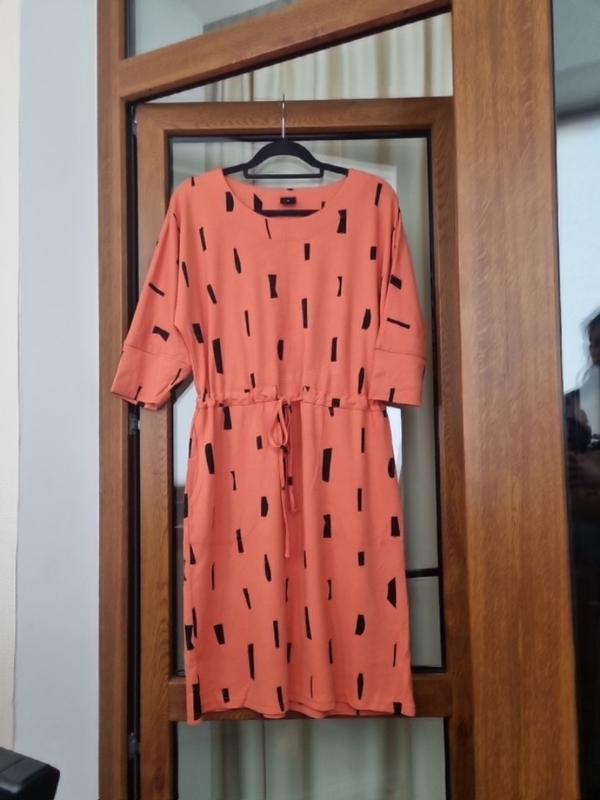 Свободное платье из плотной вискозы, в размере М-L, в идеальном состоянии с карманами по бокам. Цвет блище ко второму фото. Замеры: длина изделия – 98, длина рукава от горловины – 50, пог – 56, талия регулируется.