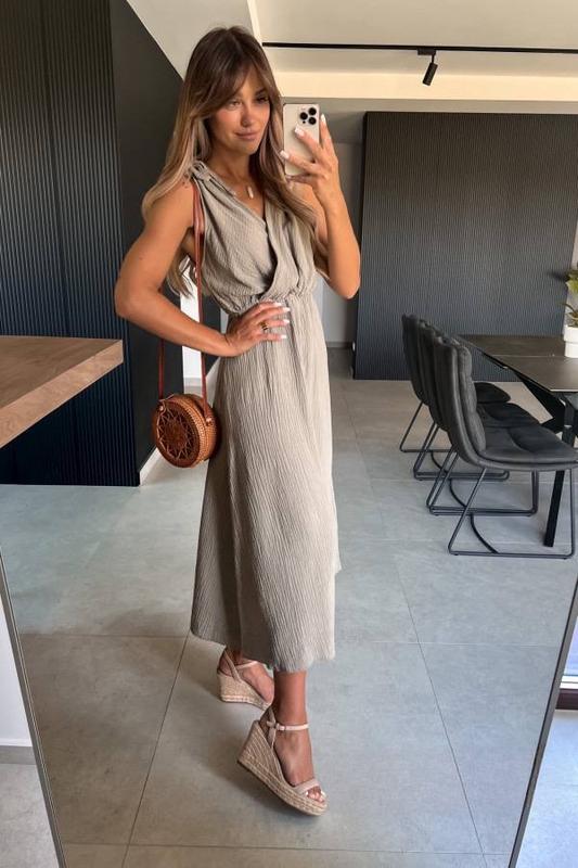 Сукня 🔹Мод: 083 🔹Размер: 42-46 🔹Цвет: беж, оливка, черный 🔹Ткань: муслин (мягкая, легкая ткань) 🔹Цена 1000грн Платье, которое подчеркнет талию, и подчеркнет хрупкость своей обладательницы.