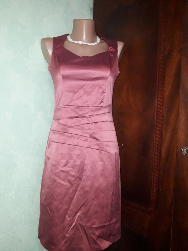 Обалденное приталенное платье, которое скроет все Ваши недостатки на животе за счет складок на талии в платье. Сидит ооочень красиво. Можно на работу носить, можно и на праздник. Ткань с виду похожа на атласную и дорого выглядит. Длина по спинке 90 см., пог 41 см., пот 35 см. поб 44см. ткань тянется.
