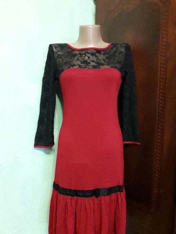 платье вискозное в идеальном состоянии, верх и рукава гипюр. Ткань тянется хорошо. Без дефектов и затяжек. Длина по спинке 86см, пог 38см, пот 35см, поб 41см.