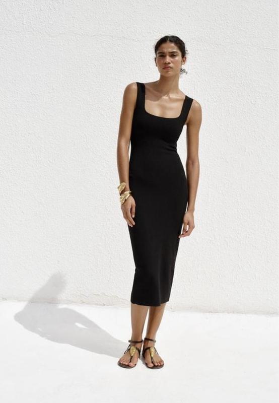 Трикотажное платье, на размер s-m, длина с учетом бретель 113 см, грудь (под мышками) 33 см, талия 30 см