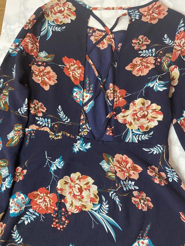 Платье в хорошем состоянии Без бирки С виду новая, мной не одевалась Размер вказано 14 Подойдет на М Длина платья 89 см