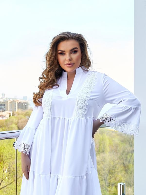 Тканина: софт Колір: білий, чорний, мінтол ( новий колір) Розмір: 50-52; 54-56; 58-60 Опис: обшите мереживом 50-52р ОГ - 106см ОТ(талия завышенная) - 110см Длина изделия - 114см Длина рукава 50см 54-56р ОГ - 114см ОТ - 120см Длина изделия - 114см Длина рукава - 50см 58-60р ОГ - 126см ОТ - 124см Длина изделия - 114см Длина рукава 50см лд